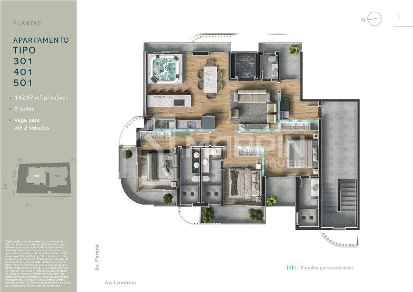 501 Tipo | 03 suítes (vaga 10) - ÁREA PRIVATIVA 142,87m2 | R$2.685.000,00